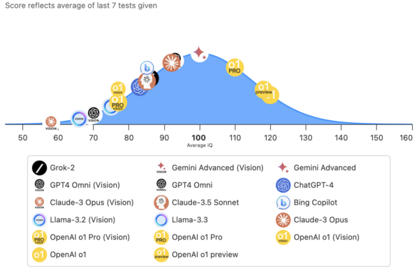 Het IQ van verschillende grote AI tools wordt vergeleken, OpenAI loopt nog steeds voorop